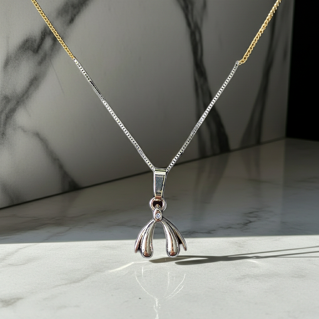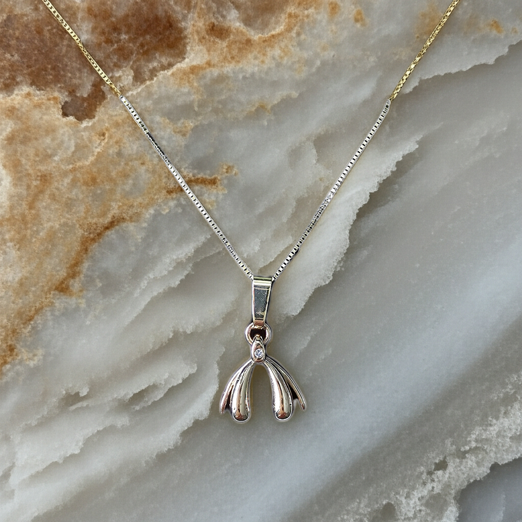 Handmade gold clitoris pendant with diamond from the AFKE collection. The pendant is handmade by renowned goldsmith Wim van Geel in Haarlem and is of exceptionally high quality. It is set with a 0.015 carat diamond.