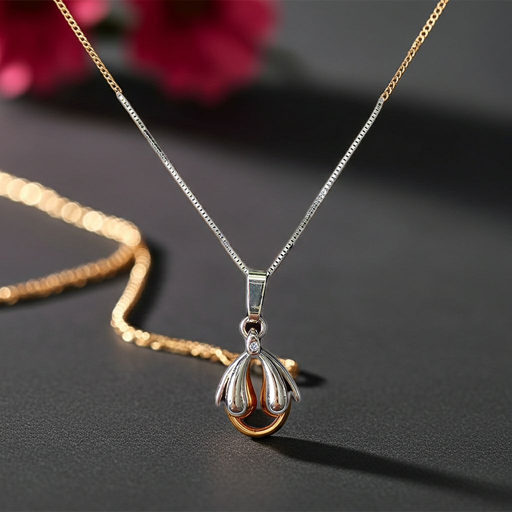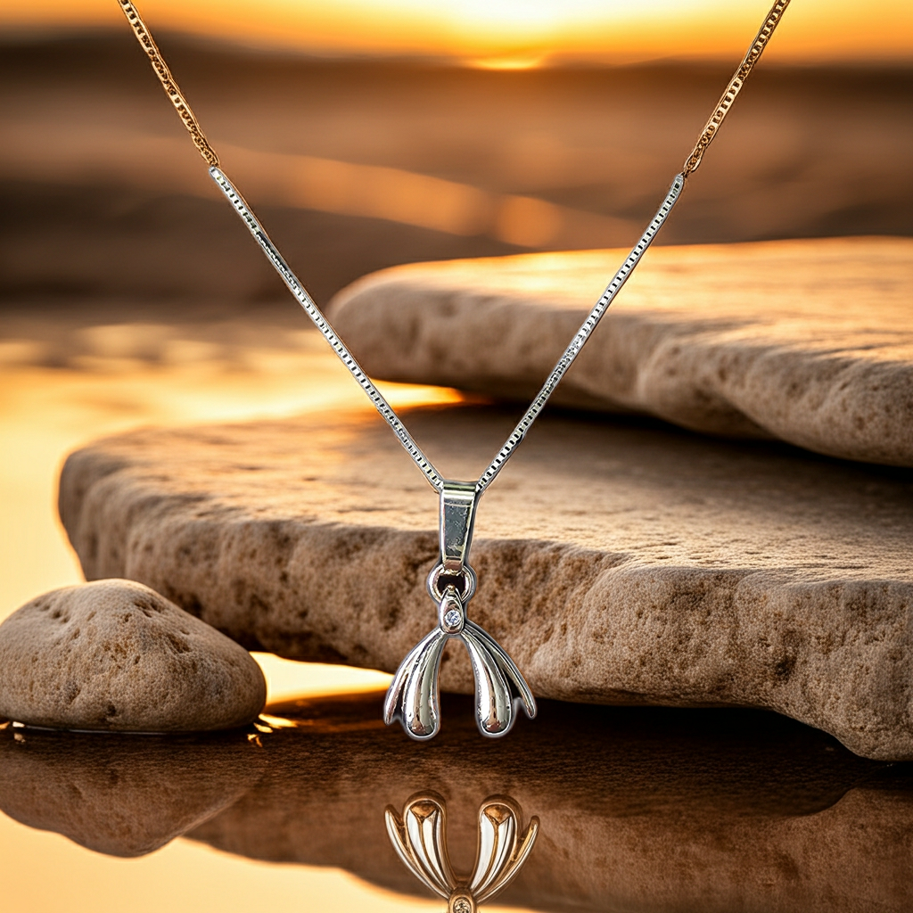 The unique pendant is paired with a beautiful 14K gold necklace. The chain features a round anchor link with a thickness of 1.2 mm and a length of 45 cm. It weighs 2 grams of gold.