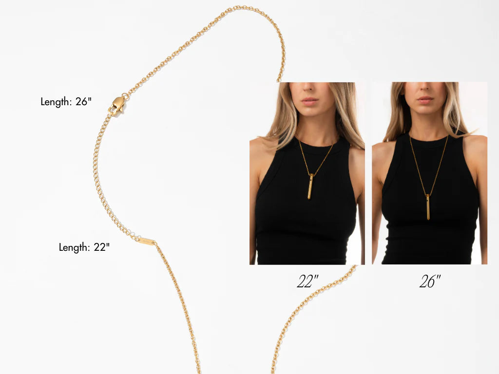 Enjoy a fully adjustable chain that shifts from 26” to 22” for versatile styling.